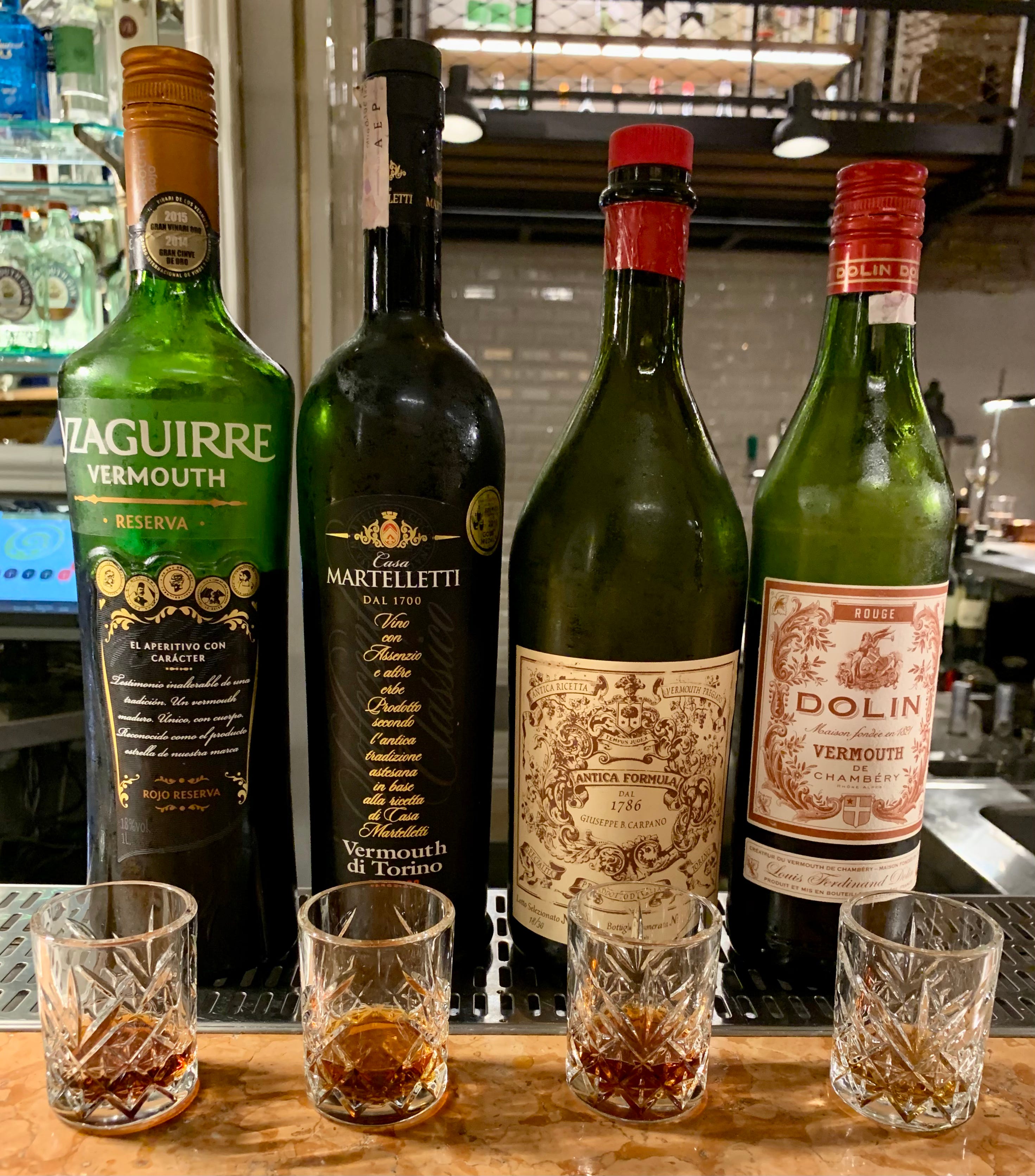 Last time we were in Rome, we did a tasting of four different Italian vermouths in the picture below. The bartender was happy to let us try them and talk about them. Sometimes bartenders enjoy this so much—instead of just whipping up another Sex on the Beach for the woo-girls—that they won’t even charge you for the tasting.